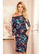 Model je vyrobený z pružného materiálu s ľahko semišovou štruktúrou a je ozdobený vzorom oranžových a ružových motýľov na zelených listoch. Tieto šaty značky Numoco sú poľským výrobkom.