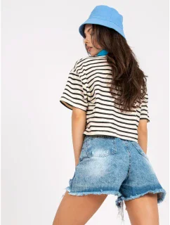 Béžová dámska blúzka s čiernym vzorom a viazaním v prednej časti 140-17