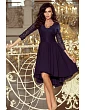 Nicolle - exkluzívny asymetrické dámske šaty v čiernej farbe s dlhším zadným dielom, 3/4 rukávy, výstrihom a čipkou.