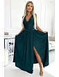 211-6 LEA dlhé šaty s čipkovým výstrihom - BOTTLE GREEN
