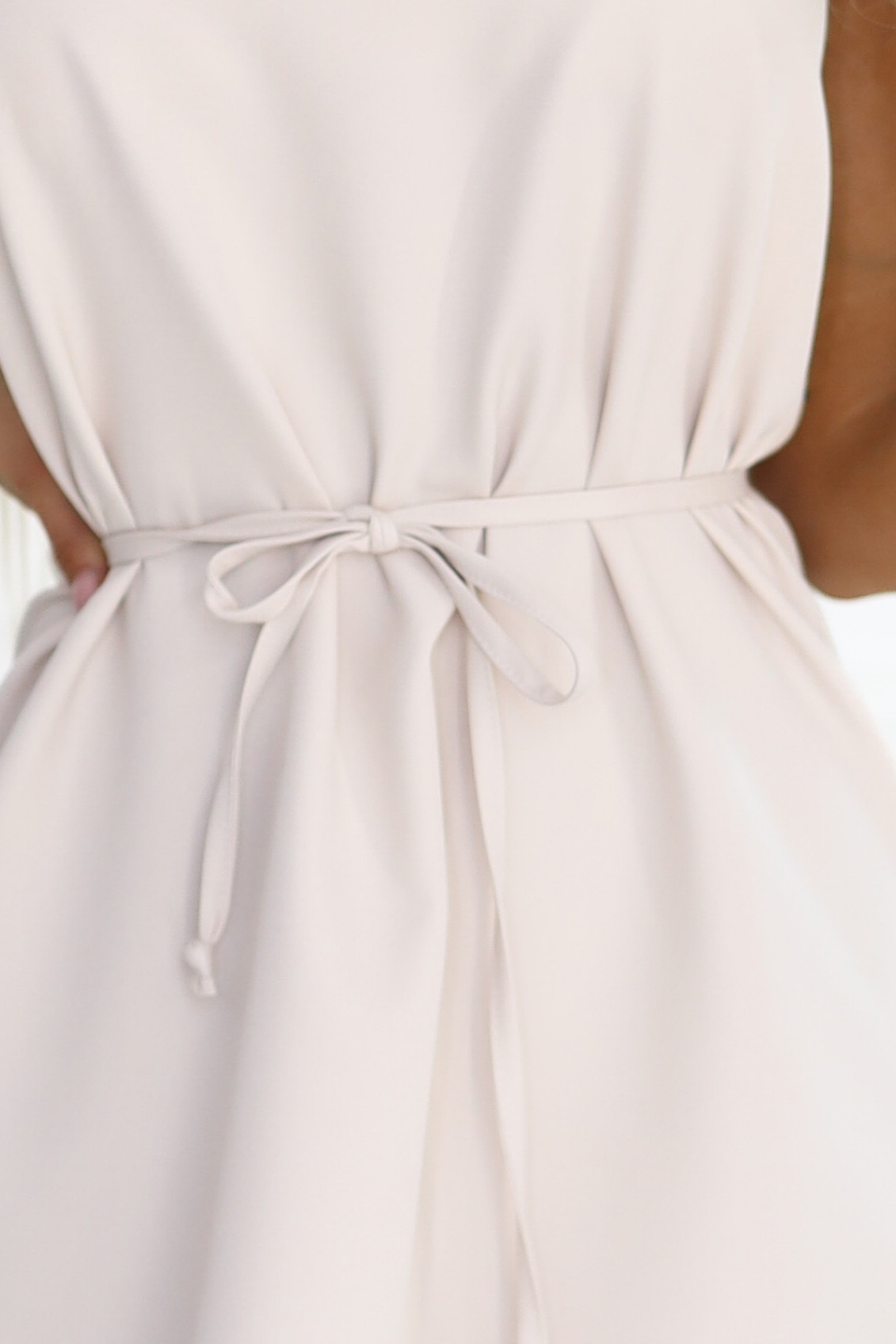 296-17 VICTORIA Trapézové šaty bez rukávov s opaskom - béžové