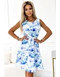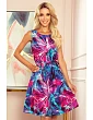 Model má okrúhly výstrih a strih bez rukávov, ktorý pekne odhaľuje ramená. V páse je opasok na zaväzovanie, ktorý umožňuje rýchle prispôsobenie šiat vašej postave, a jemne rozšírený lem je ľahký na pohyb. Dĺžka po kolená z nich robí praktické koktejlové šaty na mnohé príležitosti.