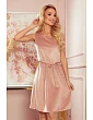 Svetlo béžové trapézové šaty Numoco so zaväzovaním v páse
