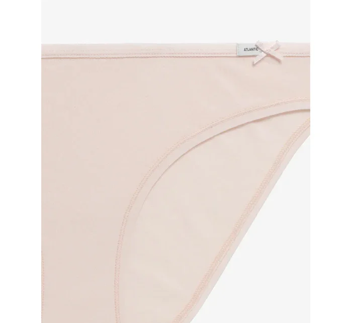 dámske nohavičky 3-PACK, Soft&Easy Collection - Dámske spodné prádloBikinové nohavičky sa dodávajú v troch farbách: tmavej ecru, béžovej a púdrovej. Bikinový strih sa vyznačuje nízkym vzrastom zakončeným mäkkým a netlačivým volánom zdobeným malým logom Atlantic a mašličkou, hlboko vykrojenými bokmi, ktoré odhaľujú a predlžujú nohy, a pomerne zabudovaným zadným dielom.