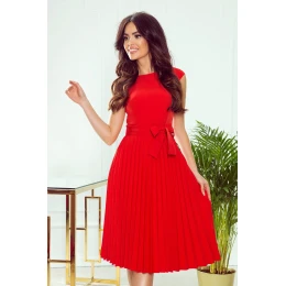 Lila - to sú červené dámske plisované šaty s krátkymi rukávmi as opaskom.