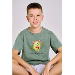 <p>Klasyczna piżama chłopięca z krókim rękawem, uszyta z bawełny, koszulka z kolorowym nadrukiem z przodu, dekolt okrągły. Do kompletu jednolite krótkie spodenki z kieszeniami i troczkiem do regulacji.</p> <p>skład: 100% bawełna</p> <p> </p> <p> </p>