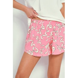 Dámské pyžamo s krátkým rukávem z měkké bavlny, zdobené jemným potiskem na přední straně, vzorované krátké šortky.