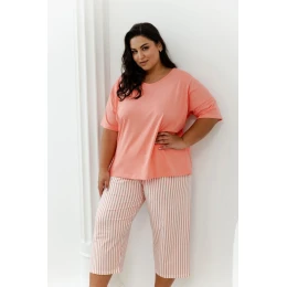 Dámske pyžamo Taro 3375 Eloise je ideálnou voľbou pre ženy, ktoré si cenia pohodlie a štýl. Je vyrobené zo 100 % mäkkej bavlny a poskytuje pohodlné zakrytie a priedušnosť počas celej noci. Hladká blúzka s krátkymi rukávmi a srdiečkovým výstrihom dodáva jemnú eleganciu, zatiaľ čo pruhované nohavice s 3/4 dĺžkou pridávajú módny nádych. Je ideálne na všetky ročné obdobia a rovnako dobre poslúži ako oblečenie na spanie aj ako pohodlné domáce oblečenie.