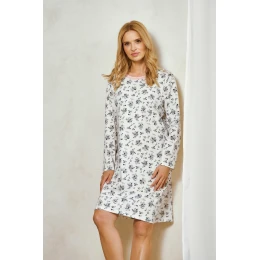 Nočná košeľa Martina 3452 značky Taro je klasika v elegantnom dizajne. Je vyrobená z kvalitnej vzorovanej bavlny a poskytuje tepelný komfort, priedušnosť a príjemný pocit na pokožke. Model má dlhé rukávy, okrúhly výstrih elegantne lemovaný lemovkou a dĺžku po kolená. Vďaka voľnému a pohodlnému strihu je košeľa ideálna na chladnejšie noci, ako aj na každodenné nosenie nočného oblečenia pre ženy, ktoré oceňujú klasický štýl a pohodlie.