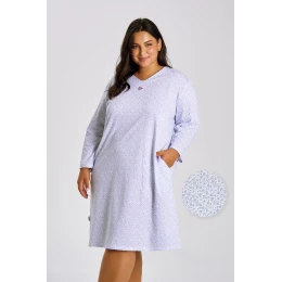 Nočná košeľa DEBORA 3464 značky TARO je ideálnou voľbou pre ženy vo veľkostiach 2XL-4XL, ktoré hľadajú pohodlie a praktický strih. Je vyrobená zo 100 % kvalitnej prírodnej bavlny, je príjemná na pokožku, priedušná a ideálna na všetky ročné obdobia. Model má 7/8 rukávy, výstrih do V a funkčné vrecká, ktoré zvyšujú pohodlie pri každodennom nosení. Vďaka dĺžke po kolená je košeľa ideálna ako nočný odev a ako pohodlné domáce oblečenie.