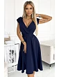 Scarlett - splývavé šaty s obálkovým výstrihom a opaskom. vyrobené z materiálu príjemného na dotyk (95% polyester, 5% elastan). farba: tmavomodrá. značka numoco. poľská výroba.