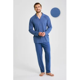 Pánske pyžamo 3485 je elegantný návrh pre mužov, ktorí oceňujú klasický štýl a pohodlie pri používaní. Košeľa s dlhými rukávmi, bez zapínania, zakončená tradičným golierom a vybavená praktickými vreckami na úrovni bokov: