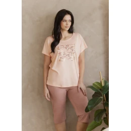 Dámske pyžamo VALENTINA 3570 vo veľkostiach 2XL-3XL je kombináciou pohodlia, ženského štýlu a prírodných materiálov. Model je vyrobený zo 100 % kvalitnej bavlny, ktorá je mäkká, priedušná a šetrná k pokožke, čo zaručuje pohodlný spánok a domáci odpočinok.