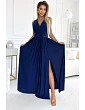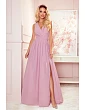 JUSTINE - Dlhé dámske šaty v bordovej farbe s výstrihom a zaväzovaním 362-5