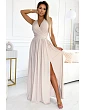 Justine - to sú dlhé dámske šaty s výstrihom, rázporkom na nohe a zaväzovaním na chrbte.