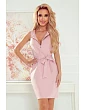 Dámske šaty so zlatým zipsom, vrecúškami a opaskom.