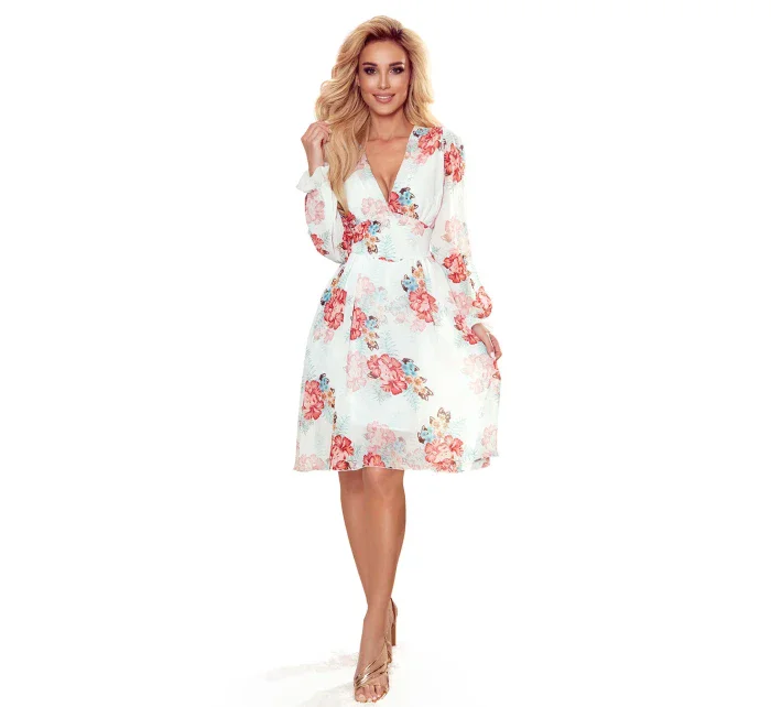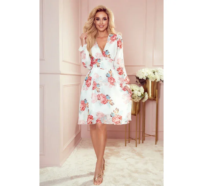FRANCES - Dámske šifónové šaty s dekoltom as kvetinovým vzorom 388-2