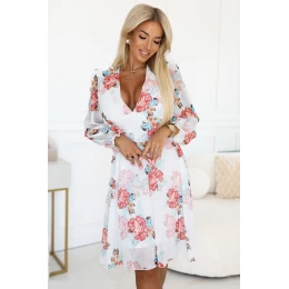 Vzdušné kvetinové obálkové šaty s dlhým rukávom z ľahkého materiálu, ženským strihom a jemným vzorom ideálne na jar a leto. Poľský výrobok - značka Numoco.