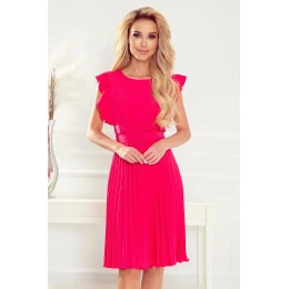 LAYLA - Dámske plisované šaty v malinovej farbe s opaskom 396-2