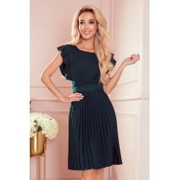 LAYLA - plisované šaty s opaskom a záhybmi, vzadu s krytým zipsom. farba: fľaškovo zelená. značka Numoco. poľská výroba.