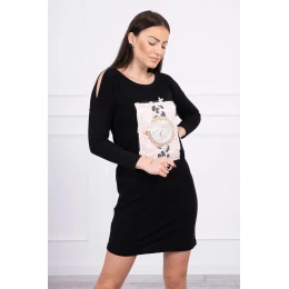 Predstavujeme vám módne šaty. Šaty má našitú grafiku s perlami a kvetinami. Šaty s prestrihmi na ramenách. Ideálne pre každodenné použitie. Šaty sú vyrobené z vysoko kvalitného materiálu. Veľkosť je univerzálna a vyhovuje dámam, ktoré nosia veľkosť S, M alebo L.