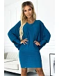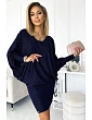 Tmavomodré dámske netopierie šaty s brokátom as výstrihom 402-1