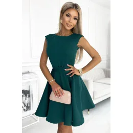 442-1 Rozkloszowana sukienka z małym rękawkiem - ZIELEŃ BUTELKOWA - NUMOCO