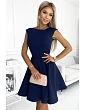 Šaty s krátkymi rukávmi a opaskom. vyrobené z hladkého materiálu v módnej tmavomodrej farbe. zapínanie na zips vzadu. značka numoco. leštený výrobok.