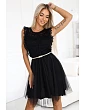 GRETA - šaty s čipkou, tylovou sukňou a zlatým opaskom. farba: modrá. značka numoco. európska výroba.