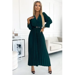 Pridanie recenzie k 462-2 SERENA Plisované maxi šaty s výstrihom, opaskom a 3/4 rukávmi - BOTTLE GREEN