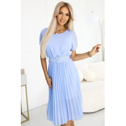 465-4 MIA Plisované šifónové midi šaty so širokým opaskom - MODRÉ