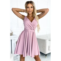 Maya - asymetrické šaty s dlhším zadným dielom, výstrihom a opaskom. Farba: špinavo ružová. Sukňa s dlhším zadným dielom bude ideálna na tanec. poľská výroba. značka Numoco.