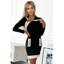 497-1 Dvojfarebné šaty s tromi zipsami - čierne a béžové