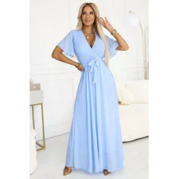 Modré šifónové maxi šaty s obálkovým výstrihom - Numoco Basic