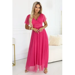 Exkluzívne maxi šaty s tylom - malinový sorbet - Numoco Basic