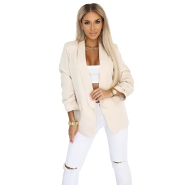 model 21745283 Dámské klasické sako s nabíranými rukávy béžové - numoco basic