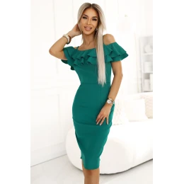 elegantné zelené šaty s volánmi na ramenách - Numoco, vyrobené v Poľsku?