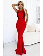 Jedinečné bordovo červené maxi šaty s elegantnými čipkovanými aplikáciami a jemnou sieťovinou vo výstrihu. Dokonale priliehajú k telu, zvýrazňujú ženské krivky a dodajú šmrnc každému outfitu - ideálne na výnimočné príležitosti.