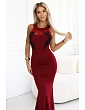 617-2 Dlhé šaty s čiernou čipkou a sieťovinou - bordové