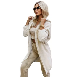 Tento stylový dámský kardigan od značky Numoco Basic je vyroben z měkkého úpletu v béžové barvě a má praktickou kapuci, pohodlné kapsy a módní žebrované manžety - ideální pro chladnější dny. evropský výrobek.