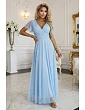 635-8 MELANIA Dlhé trblietavé šaty s výstrihom a krátkymi rukávmi - pistáciová