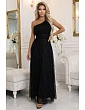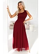 656-1 Dlhé trblietavé večerné šaty na jedno rameno - bordové