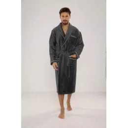 Pánsky froté župan so zaväzovaním v páse.