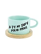 Hrnek má objem 200 ml, tak akorát na kávu nebo čaj, který ti dodá trochu klidu (nebo aspoň odstup). Ke každému hrníčku patří bambusový podtácek, který celý set hezky doplní a ochrání stůl.