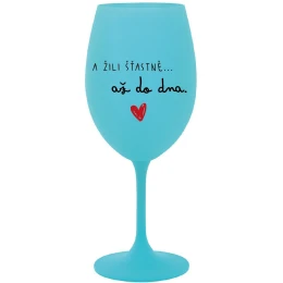 A ŽILI ŠŤASTNĚ AŽ DO DNA - tyrkysová sklenice na víno 350 ml