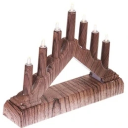 Moderné adventné lampy môžu mať rôzne tvary, môžu byť v glamour alebo ECO štýle, môžu byť s trblietkami alebo so svetlami LED. Táto lampa má tradičný tvar a imituje 7 sviečok umiestnených na drevenom ráme.