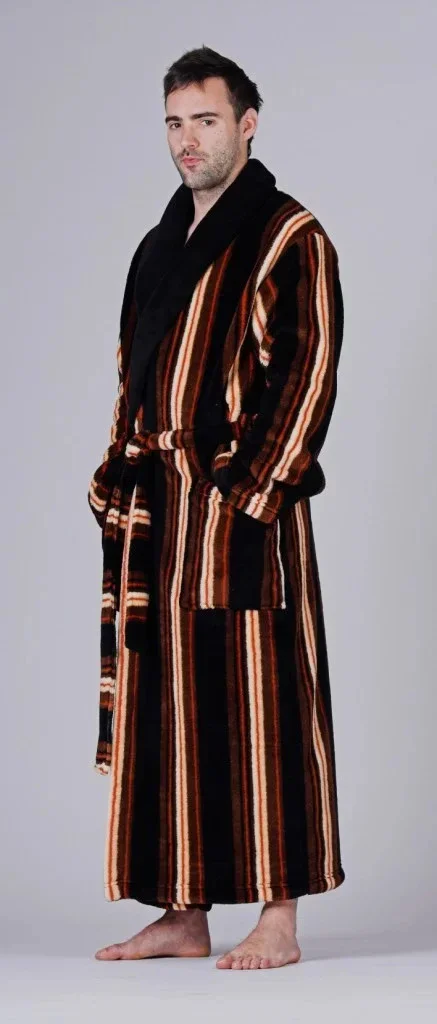 Pánsky dlhý župan v hnedo-čierno-bielej kombinácii