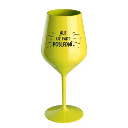ALE UŽ FAKT POSLEDNÍ - žlutá nerozbitná sklenice na víno 470 ml