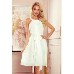 ALIZEE - Dámske šifónové šaty vo farbe ecru so zaväzovaním 350-1