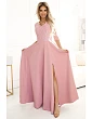 Pridanie recenzie k 309-11 AMBER čipkované elegantné dlhé šaty s výstrihom a rozparkom na nohách - BLACK